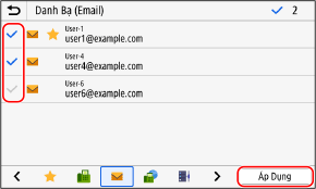 Nếu màn hình [PIN Danh Bạ] được hiển thị, nhập mã PIN, và nhấn [Áp Dụng].