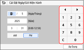 Phím số xuất hiện đối với các mục chỉ cho phép nhập số.