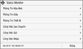Màn hình này được hiển thị khi bạn nhấn [Status Monitor] trên màn hình [Home] và các vị trí khác.