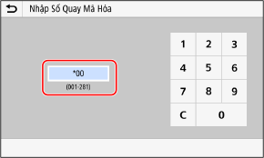 Khi chỉ định điểm đích trên màn hình quét hoặc fax, ngoài việc sử dụng danh sách điểm đích, bạn cũng có thể nhập số Quay Số Mã Hóa để chỉ định điểm đích.