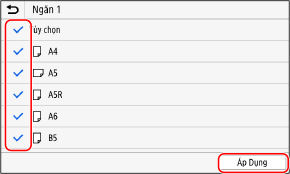 Khổ giấy có hộp kiểm bị bỏ chọn sẽ không được hiển thị trên màn hình cài đặt giấy.