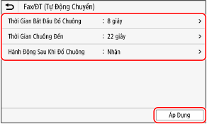 Đặt thời gian đổ chuông và hành động khi nhận fax, và nhấn [Áp Dụng].