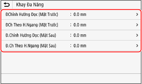 Bạn có thể chỉ định hướng và độ rộng điều chỉnh cho từng nguồn giấy và mặt in (mặt trước và sau).