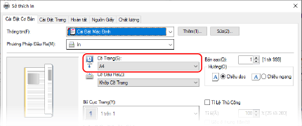 Trong [Khổ giấy] của tùy chọn in, chọn khổ giấy của tài liệu.