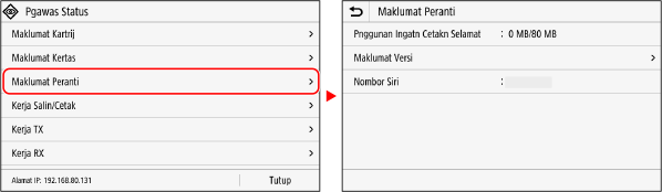 Apabila anda mengetik nama atau butang item, item tersebut dapat dipilih. Skrin yang dipilih dipaparkan, atau fungsi yang dipilih dijalankan.