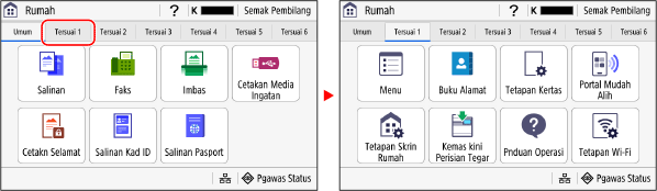 Sentuh skrin dan jentik hujung jari anda. Skrin bergerak mengikut arah anda menjentik jari anda. Contohnya, skrin [Rumah] bergerak ke tab mengikut arah anda menjentik jari anda.