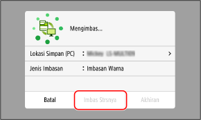 Format data yang diimbas, lokasi simpan di komputer, dan tetapan lain ditetapkan untuk setiap tetapan imbasan. Dokumen asal diimbas mengikut tetapan imbas yang dipilih.