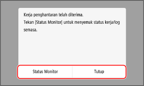 Memeriksa Status Hantar dan Simpan Serta Log Data yang DiimbasMenekan [Tutup] akan memaparkan skrin imbas.