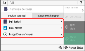 Jika destinasi semasa menghantar adalah disekat kerana Tetapan Pengesahan untuk Fungsi Hantar, anda tidak boleh menentukan destinasi lain. Untuk butiran, hubungi pentadbir.