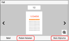 Jika ada halaman yang tidak ingin dihantar, buka halaman itu dan tekan [Padam Halaman].