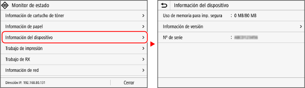 Si toca un nombre de elemento o botón, puede seleccionar el elemento. Aparece la pantalla seleccionada o se realiza la función seleccionada.