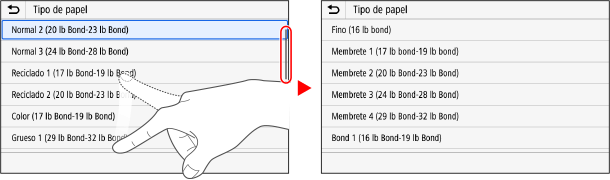 Mueva el dedo mientras toca la pantalla y suéltelo en la posición que desee. Puede desplazarse por listas y mover el área que está tocando hasta la posición que desee.