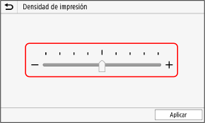Toque los botones [+] y [-] para ajustar el valor. Si aparece el control deslizante tal y como se muestra a continuación, puede arrastrarlo a la izquierda o a la derecha para ajustar el valor.