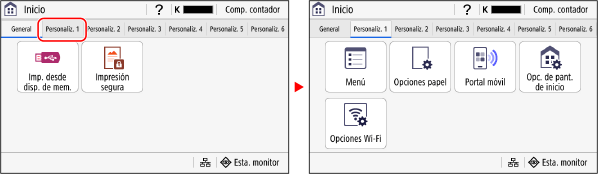 Si toca una pestaña, aparece la pantalla correspondiente a la pestaña seleccionada.