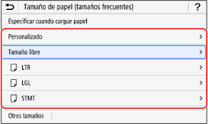 Pulse [Otros tamaños] y seleccione el tamaño de papel en la lista que aparece.