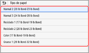 Si necesita cambiar con frecuencia el papel que se va a cargar, configure esta opción como [Libre]; esto reducirá el número de pasos necesarios para cambiar la configuración cada vez. Sin embargo, tenga en cuenta que esta configuración permite que la máquina realice la impresión incluso si hay una falta de coincidencia entre la configuración del tipo de papel del controlador de la impresora y el tipo de papel realmente cargado en la máquina.