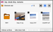 Pantalla de selección de archivos en el dispositivo de memoria USB