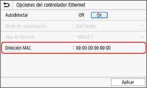 Puede ver la dirección MAC configurada en la máquina cuando esta esté conectada a la LAN con cable.
