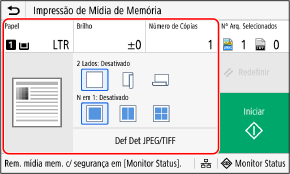 No painel de controle, pressione [Impressão de Mídia Memória] na tela [Início].