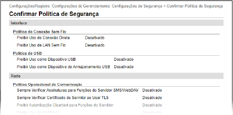 Você pode verificar os itens da política e seu uso na UI Remota, na tela [Confirmar Política de Segurança].
