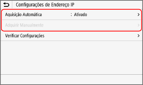 1 | Pressione [Aquisição Automática]. A tela [Configurações End. IP (Aquisição Auto)] é exibida. |