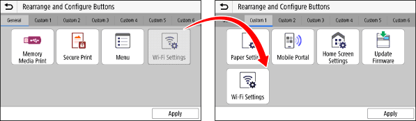 You can rearrange the buttons on the [Home] screen and move buttons to other tabs.
