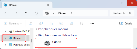 Si rien ne s'affiche dans [Réseau], activez la recherche sur le réseau.