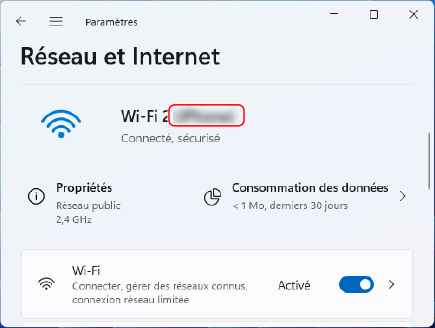 Le SSID est affiché dans [Nom du réseau].