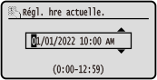 Si la plage de saisie des valeurs est limitée, la valeur que vous pouvez saisir est affichée entre parenthèses ( ) à l’écran.