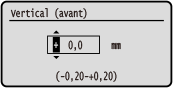 Spécifiez la largeur de réglage en sélectionnant une valeur positive pour un réglage vers le bas sur le papier ou une valeur négative pour un réglage vers le haut sur le papier.