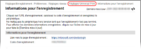 L'écran [Réglages Universal Print] s'affiche.