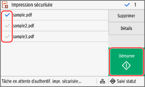 Cochez la case des données sécurisées à imprimer et appuyez sur [Démarrer].