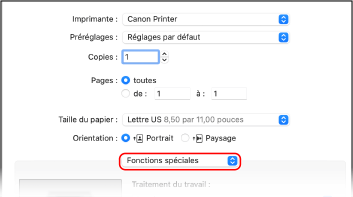 Dans le menu contextuel des options d'impression, sélectionnez [Fonctions spéciales].