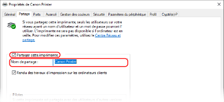 Cochez la case [Partage d’imprimantes].