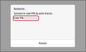 Lorsque le routeur LAN sans fil prend en charge le mode code PIN WPS, vous pouvez établir une connexion en enregistrant un code PIN généré sur l’appareil auprès du routeur LAN sans fil. Utilisez un ordinateur pour enregistrer le code PIN.