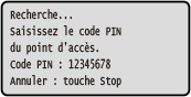 Une fois cet écran affiché, vous devez enregistrer le code PIN WPS sur le routeur LAN sans fil dans les 10 minutes.