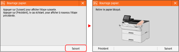 , et suivez les instructions affichées pour résoudre le bourrage papier.