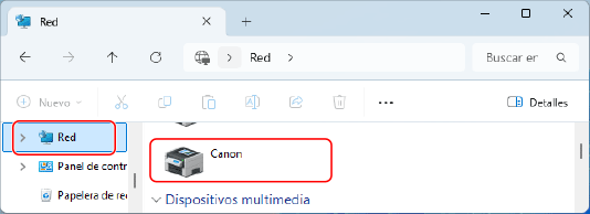 El nombre que aparece en [Nombre del ordenador] en la pantalla [Compartir] puede que no se pueda utilizar en la red. Utilice el siguiente procedimiento para consultar el nombre del ordenador utilizado en la red.