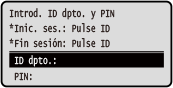Si se hubiera configurado la Gestión de ID de departamentos, aparecerá la siguiente pantalla de inicio de sesión. Introduzca el ID de departamento para iniciar sesión. Si se hubiera configurado un PIN, introduzca el PIN.