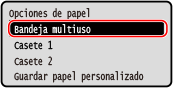 Si siempre usa el mismo papel en la bandeja multiuso, puede registrar el tamaño y el tipo de papel. Esto evita que aparezca la pantalla de configuración del papel, de modo que se ahorra la molestia de tener que configurar las opciones.