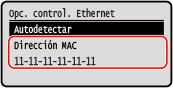 Puede ver la dirección MAC configurada en la máquina cuando esta esté conectada a la LAN con cable.