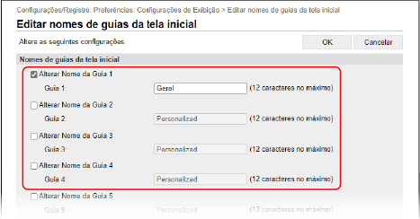 A tela [Editar nomes de guias da tela inicial] é exibida.