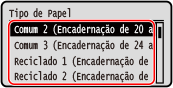 Selecione o tipo de papel e pressione