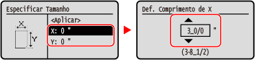 Selecione [X] ou [Y], e digite o comprimento de cada lado usando [+] e [-], com