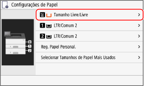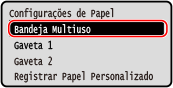 Se você sempre usa o mesmo papel na bandeja multiuso, poderá registrar o tamanho e tipo de papel. Isso evita que a tela de configurações do papel seja exibida, evitando o trabalho de definir as configurações.