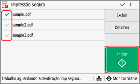 Marque a caixa de seleção dos dados seguros para imprimir e pressione [Iniciar].