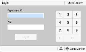 When Department ID Management is set up, the following login screen is displayed. Enter the Department ID to log in. If a PIN is set, enter the PIN.