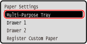 If you always use the same paper in the multi-purpose tray, you can register the paper size and type. This prevents the paper settings screen from being displayed, saving you the trouble of configuring the settings.