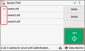 On the control panel, select [Secure Print] in the [Home] screen, and press . [Home] Screen