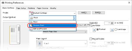 With Secure Print, you can set a PIN to a document on the computer and send that document to the machine to be printed. Printing is performed after that PIN is entered on the machine.
